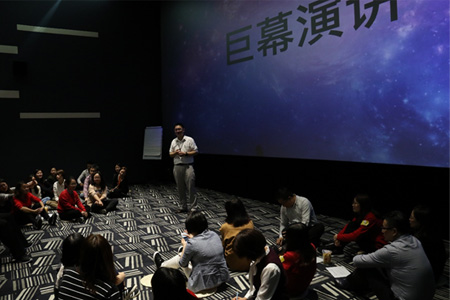 為打造集創(chuàng)意、交流、跨界、體驗元素為一體的文化交流空間,2020年臨空影城啟動影廳改造計劃,將原3號電影放映廳改造成融合創(chuàng)意活動、體驗式培訓(xùn)的“無界”廳。在保留巨型影屏和震撼視聽體驗的基礎(chǔ)上,“無界”廳從用戶體驗出發(fā),將屏幕前方空間向前拓寬,方寸天地即刻化作為人與人之間的連接留白,無限可能將在此生發(fā)。
